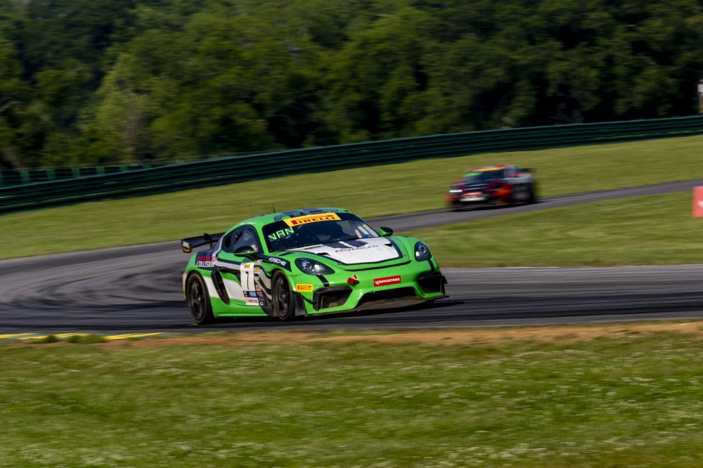 • #7 Porsche 718 Cayman GT4 RS Clubsport of Curt Swearingen and Kay van Berlo, ACI Motorsports, Pirelli GT4 America, Pro-Am, SRO America, VIRginia International Raceway, Alton VA, June 2023.