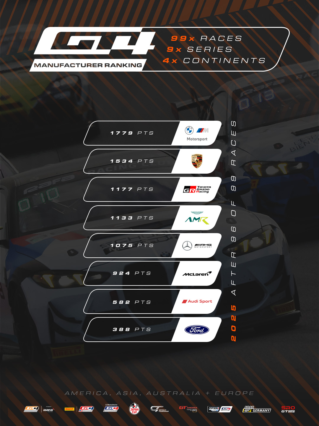 BMW has clinched the 2025 GT4 Manufacturer Ranking title with two rounds to spare after establishing an unassailable advantage at the top of the global standings.